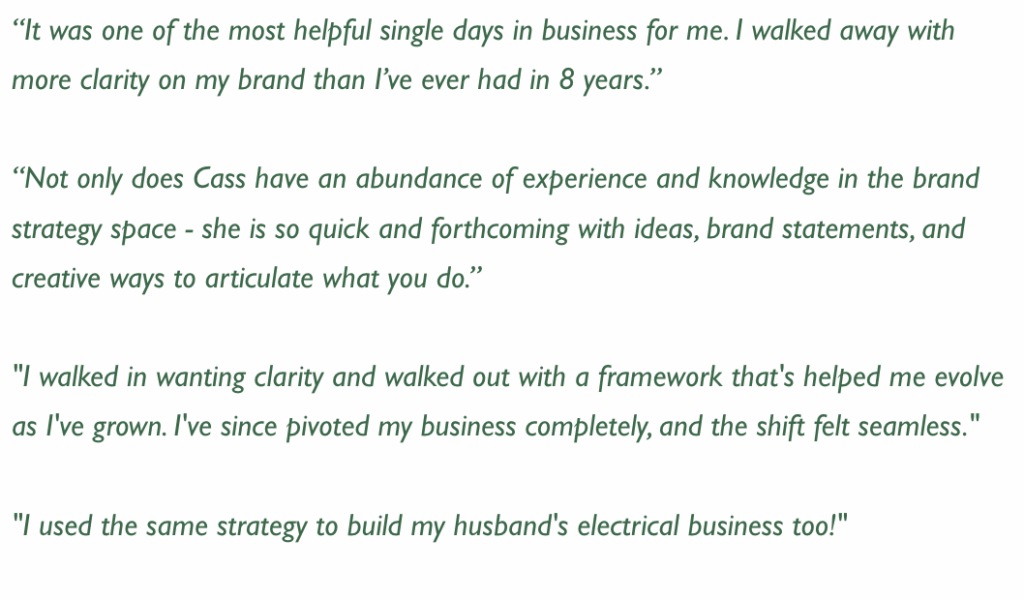 The reality is that every day you don’t have a strategic brand, potential clients are choosing someone else, you’re undercharging even though you are worth more, and you’re building a business that depends entirely on your hustle